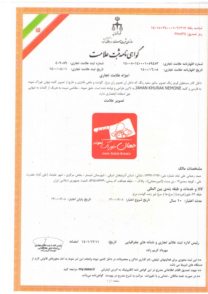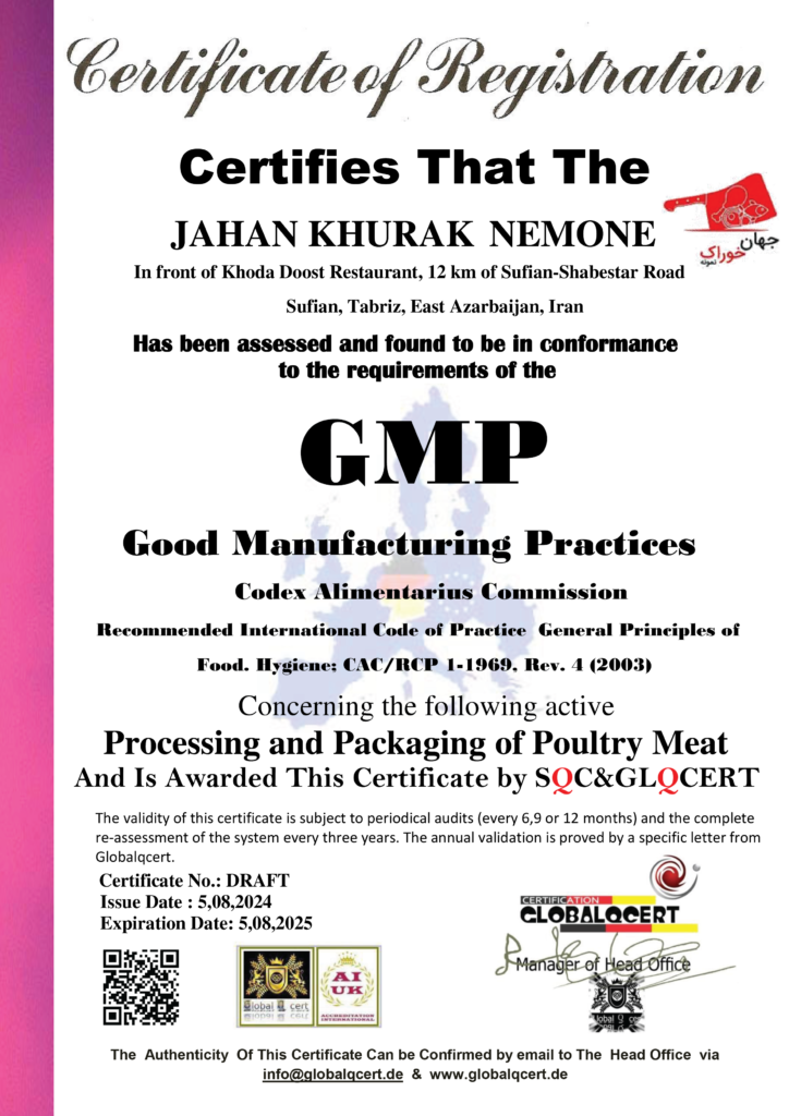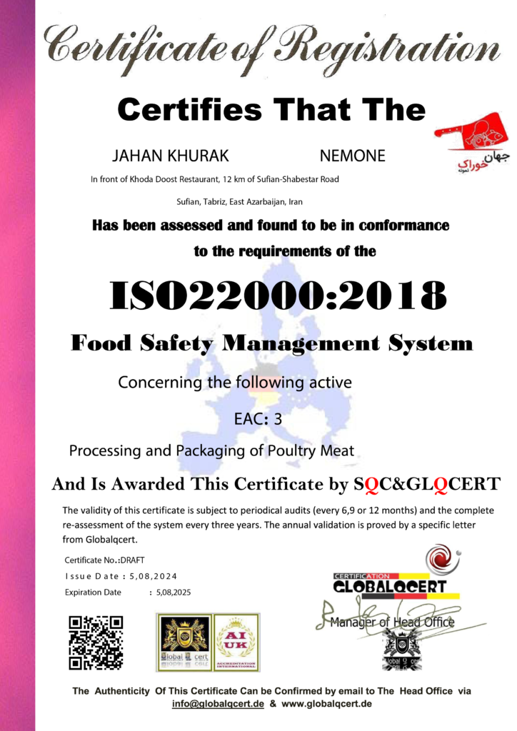 در دنیایی که راحتی و کیفیت در کنار هم معنا پیدا میکنند، مجموعه غذایی جهان خوراک استانداردهای جدیدی را در فرآوری و بستهبندی مواد غذایی تعریف کرده است. با تعهد به نوآوری، پایداری و رضایت مشتری، ما آمادهایم آیندهای درخشان برای راهحلهای غذایی رقم بزنیم. کیفیت بینظیر: محصولات ما با دقت بالا تهیه شدهاند تا هر بسته و تحویل با بالاترین استانداردهای تازگی، طعم و ایمنی مطابقت داشته باشد. از مصرف خانگی تا سرآشپزهای حرفهای، ما آنچه نیاز دارید برای خلق وعدههای بهیادماندنی فراهم میکنیم. نوآوری در قلب کار ما: با پذیرش تکنولوژیهای پیشرفته، ما قصد داریم فراتر از فرآوردههای مرغ، محصولات متنوعی از جمله گوشتهای خاص، جایگزینهای گیاهی و کیتهای غذاهای آماده برای سبک زندگی مدرن ارائه دهیم. پایداری برای آینده: مراقبت از سیارهمان به اندازه توجه به مشتریانمان برای ما مهم است. بستهبندیهای سازگار با محیط زیست و روشهای تهیه مسئولانه، آیندهای بهتر برای همه را تضمین میکند. حضور جهانی با لمس محلی: با برنامههایی برای گسترش در آینده، هدف ما برقراری ارتباط با کشورهای همسایه است، ارتباط نزدیک و صمیمانهای که ما را متمایز میکند حفظ میکنیم.